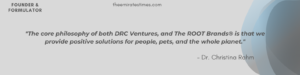 The core philosophy of both DRC Ventures, and The ROOT Brands® is that we provide positive solutions for people, pets, and the whole planet. It is about rediscovering our inner selves, and nurturing our minds, souls, and hearts while taking care of our physical, mental, and spiritual health.”
