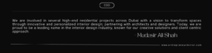 Eventually, we expanded from business to residential, hospitality, and healthcare sectors. Currently working on high-end residential projects in Dubai, we are aiming to revolutionize spaces with innovative interior design by collaborating with architects and designers. We are now a renowned leader in the industry, recognized for our creative solutions and client-focused approach.”